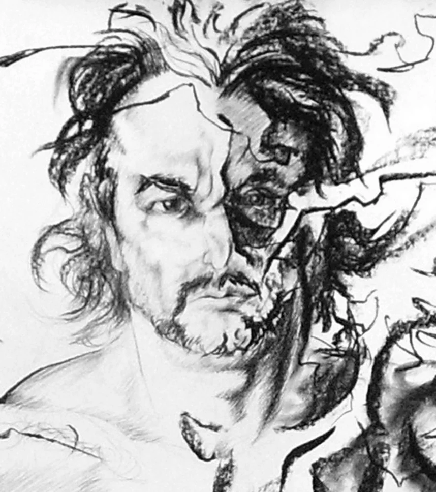 Similar to the way a Jazz performer uses a familiar song as a starting point for improvisation, I use the Renaissancesque human figure as inspiration for creating Abstract Expressionist gesture. This extends it physically, emotionally and philosophically. Throughout many eras of art various harmonious forms have been placed near the figure to extend its gesture, such as the swirling draperies of Baroque and Renaissance paintings. What I do though, is to not just have complimentary forms exist in the same space as the human figure, but actually have them flowing from, and into it, thus integrating the two into a single more complex form.